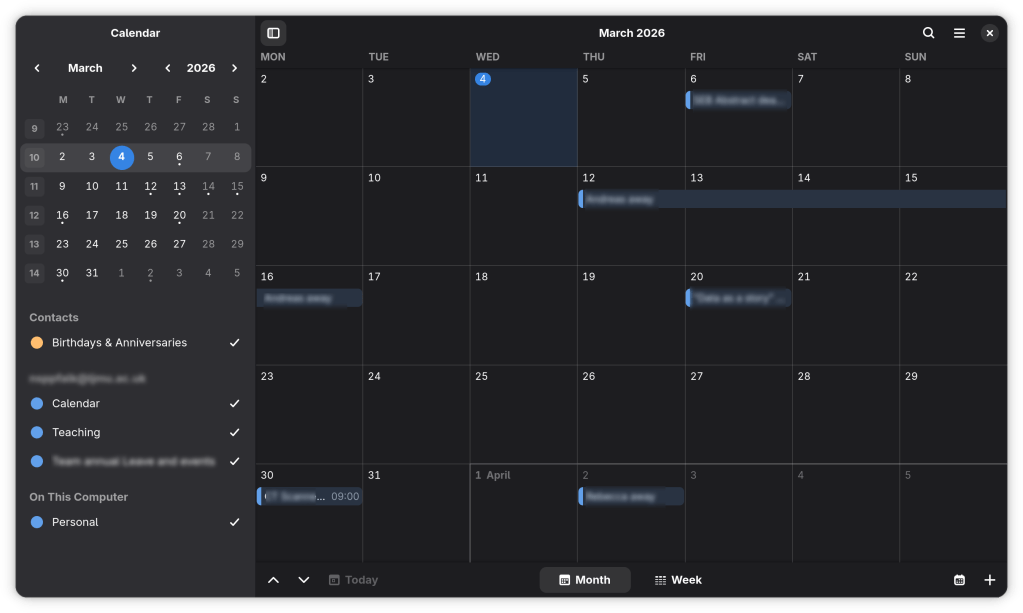 Every aspect of the above is problematic if you’re on Linux. There are no official Linux binaries for teams nor Outlook. Email cannot be added to native clients. That in turn means I can’t see personal and work calendars in tandem. Fine for our administrators who only care about work when they are in their offices, but not ideal for Academics that live a very much blended work/life.