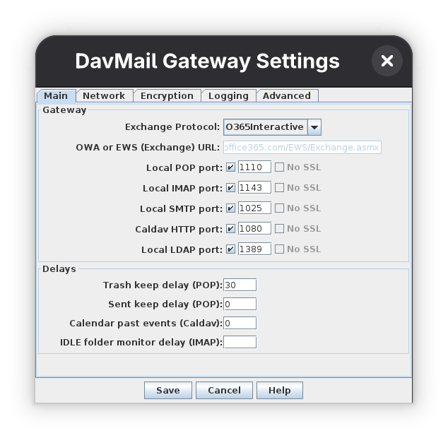 So, you need to install davmail. that will sit up in your app task tray (if you installed one in Gnome). Set Davmail as follows: