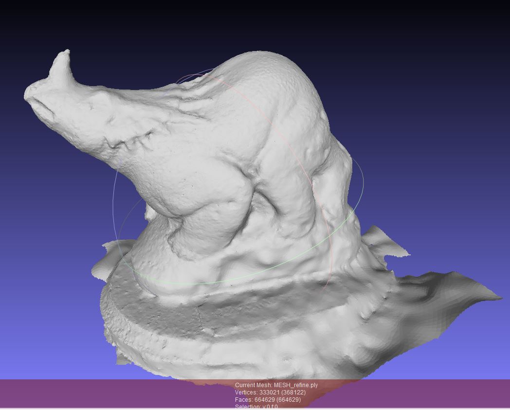 I then textured the model using Meshlab after cleaning up some large extraneous triangles (no detailed cleaning):