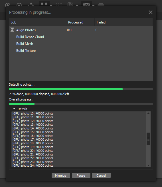 It takes a bit longer to process, but it does use the GPU while doing so, and it doesn’t require that the dense cloud to be calculated at all, so saves time there. But the result is, as you can see above, way better than the old way of doing things by meshing the dense point cloud.