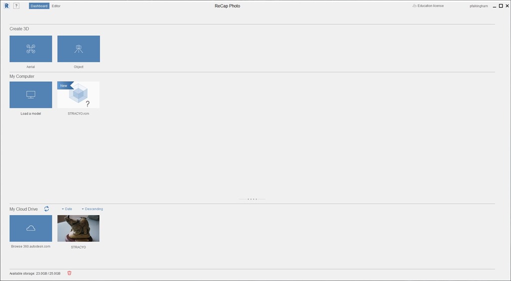 In this post, I’ll be taking a look at the Photogrammetry solution from Autodesk – ReCap Photo. This is commercial software, but as with most (all?) of Autodesk’s offerings, an academic email address will get you access for free.
