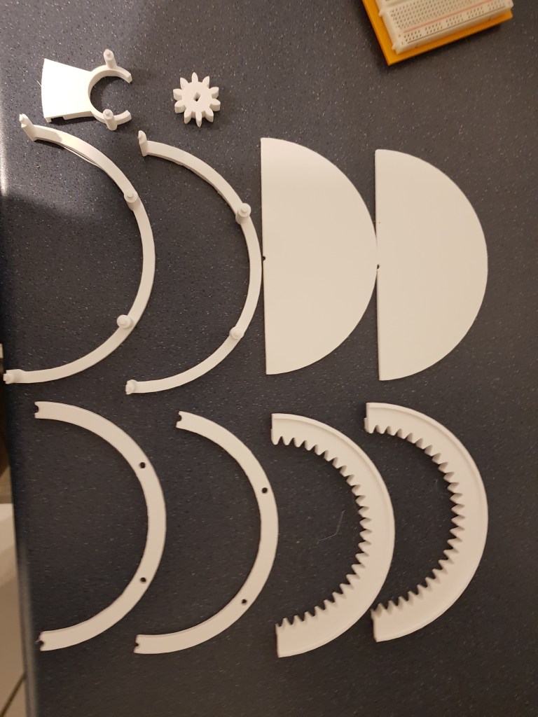 I used my Dremel 3D20 to print out the parts.  One major problem is that the build volume of the 3D20 isn’t big enough to print the larger parts.  I considered scaling them, but the issues with the gears would have made that process more difficult than I was willing to commit to.