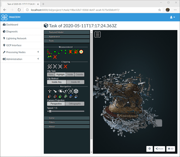 That’ll take you to a 3D viewer, still in your browser, showing your model as a dense point cloud: