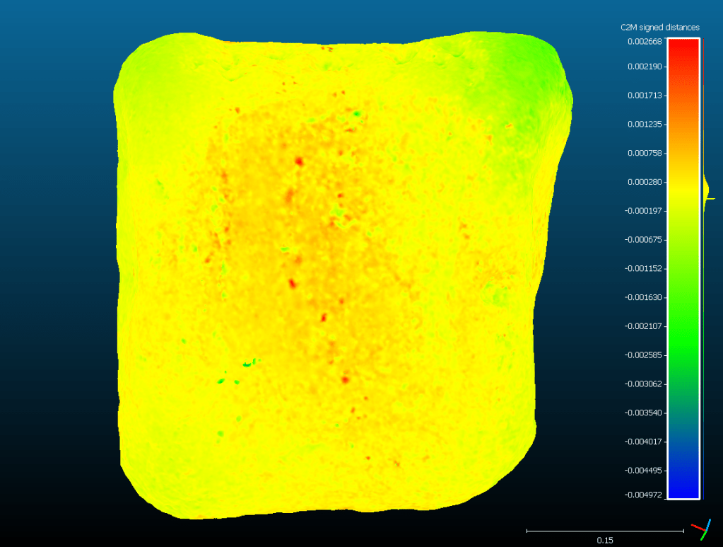[Edit] Llion Evans commented below on what the difference between the meshes looks like. I put them both in cloud compare to see. I haven’t scaled the model, but you can see that differences between meshes are on the order of 0.0002, if the ammonite is 0.4 units across.