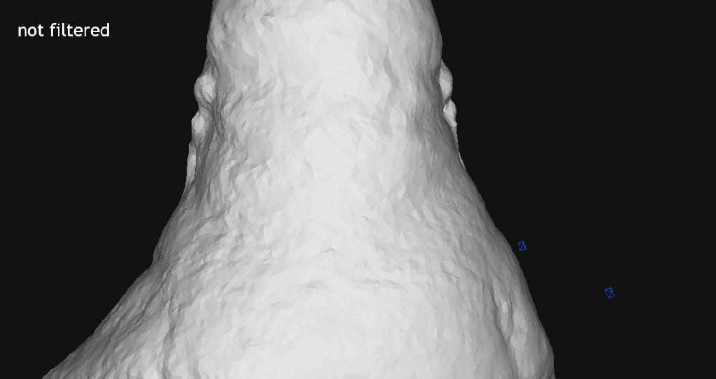 You will notice how the edge filtering and photoconsistency will greatly improve the surface. In this case I also raised a bit the enhance filter (which does not add real photogrammetry detail but enhances the mesh in a more pleasant way - I am not sure if this is smooth paint or if indeed these dents are real, but they are accentuated - you can leave it to 0% of course if you want only real photogrammetric detail)