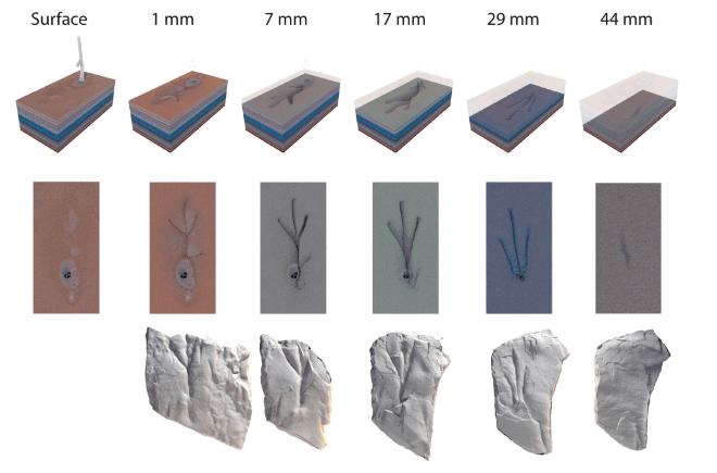 The idea being that if sediment motion resulted in a very different looking track, our hypothesis would be rejected, but if the simulation matched the fossil, then our hypothesis would be supported.