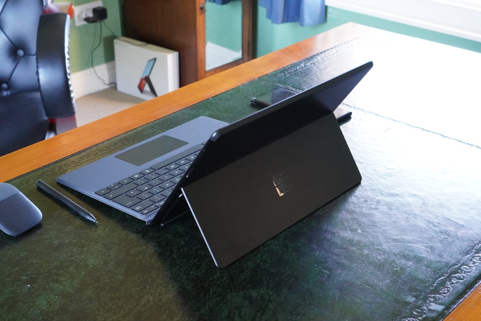 While all the surface devices I’ve owned have been well built machines, something about the Pro X screams quality like nothing else. The black coating it has just makes the computer feel luxurious. It’s worth noting that at least on the machine I have, there isn’t even a hint of light bleed. Not that there should be, but my Go suffers from sometimes-noticeable light bleed at the bottom of the screen. The kickstand – a feature that has completely spoiled me and prevents my buying any 2-in-1 computers or tablets without it – is incredibly precise and perfectly resistant to motion.