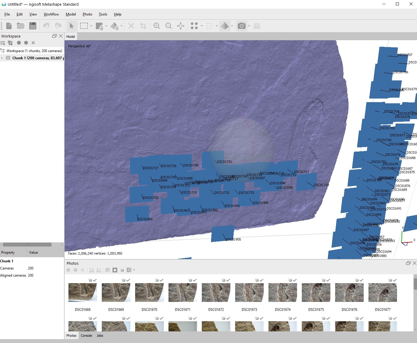 Very cool. Most macro shots I have done are for fun, flowers/birds etc.) I usually shoot wide open (about F4 on a 105 mm macro lens). However, I would think you would want to narrow the aperture considerably (F/14ish)?? To be honest I had not thought of using a macro lens for photogrammetry, but think it would be good to try. I see from your figure that you used a series of overlapping nadir positions for the places where the camera was near the sample. I assume the encircling shots were just to have the full sample piece on all sides in the model?? Just curious, did you set a specific aperture, low ISO, use a tripod and shoot in aperture priority. I might give it a go at DSP for some very small casts of a hopping trace. I’d likely use low-angle light the sample, although it is quite awkward to position a camera near the sample. Is 105 too long a lens in your opinion?? This relates to a slab I modelled a while back for collaboration with Paul O. Am working with some others too. Here is the sketchfab link to those models: