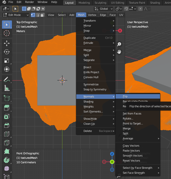 That’s because my track isn’t manifold, and the normals on my track were facing ‘up’, but if I want to keep the lower piece, I need to reverse the normals (head into Edit mode, then Mesh->normals->flip):