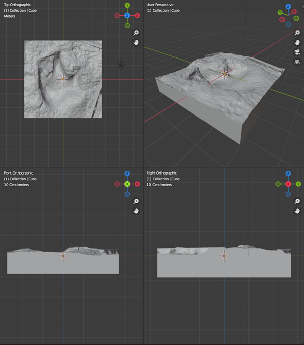 I’ll then scale the cube, such that the scan pokes out of each side, and the cube extends below the scan by an amount I think is appropriate