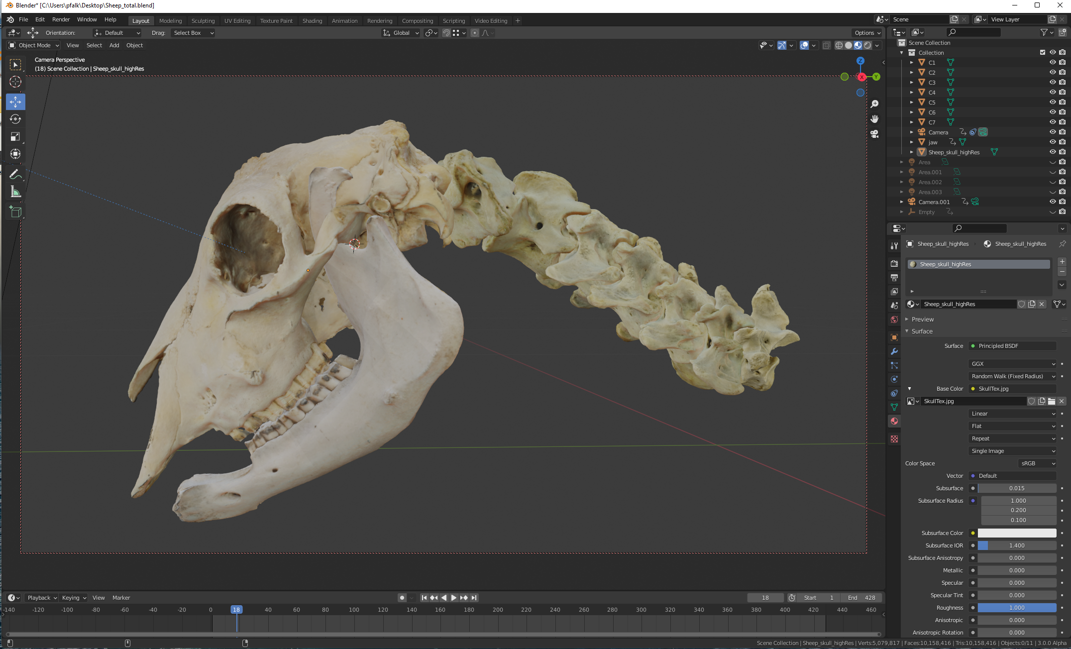 I recently showed off on twitter a project I’d been working on for a while, a photogrammetric model of a sheep skull and neck, where each bone has been digitized seperately: