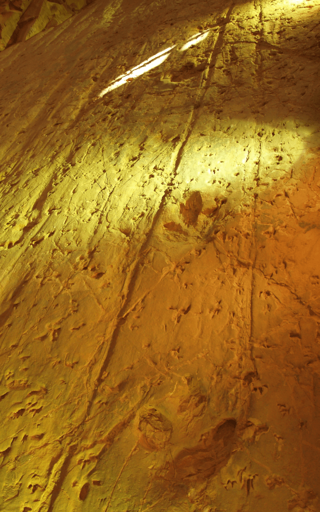 In fact, it’s really hard to narrow down exactly what makes a theropod track a theropod track, and an ornithopod track an ornithopod track. Ichnologists will often use context to help – what dinosaur bones are known from the area where the footprints are found, for instance, or how old are the rocks?