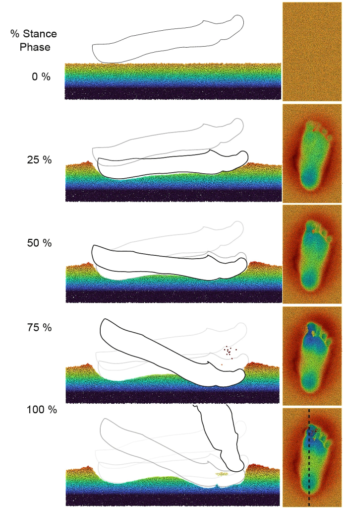 This paper shows how fossil footprints can provide unique insights into hominin locomotion, but also how they can be misleading if we don’t understand how they are formed. By using a combination of experimental and computational methods, we were able to reveal the dynamic nature of footprint formation and interpret fossil tracks in a new light. This paper also highlights the diversity of locomotor strategies within the hominin clade and the evolutionary significance of foot kinematics for bipedalism.