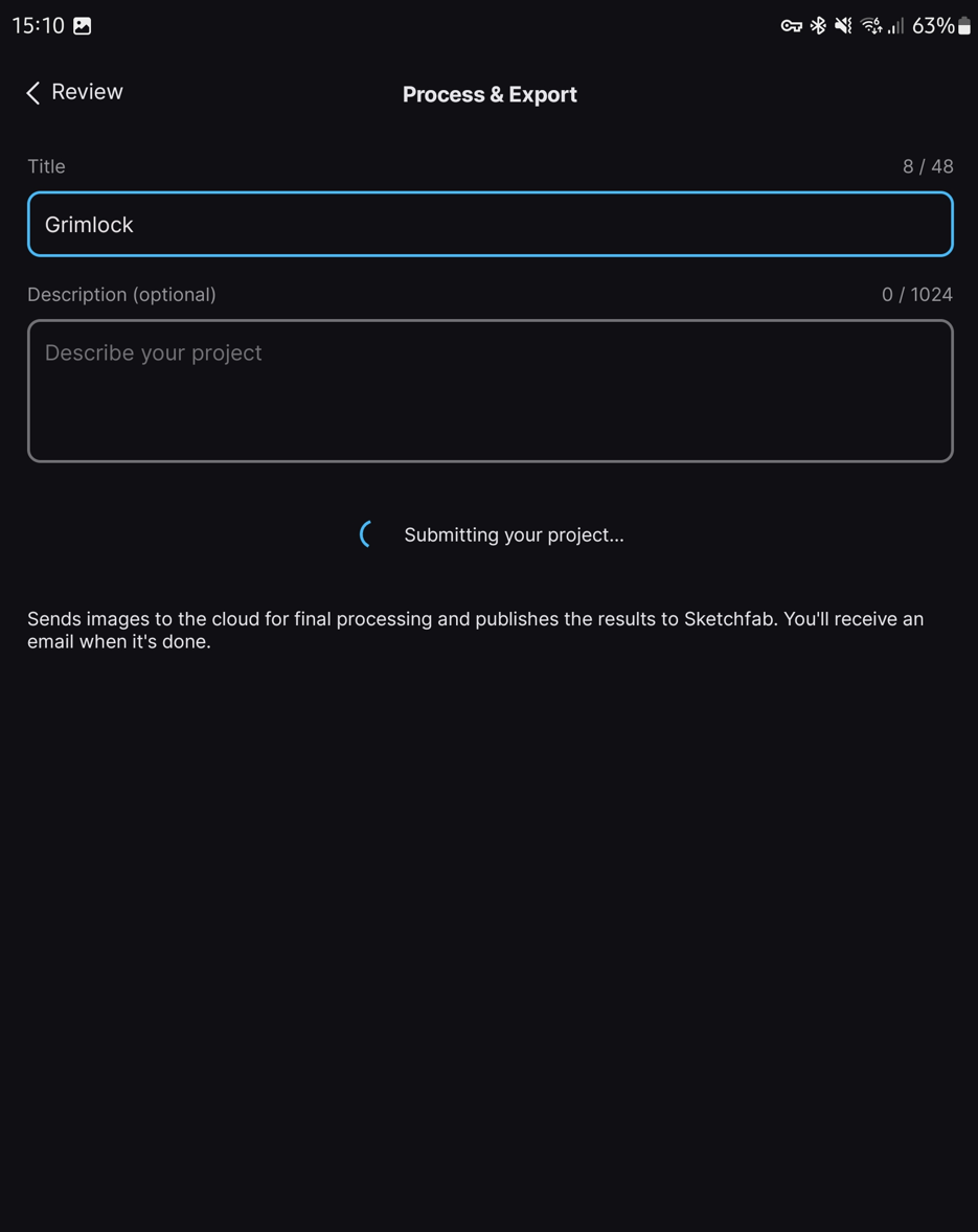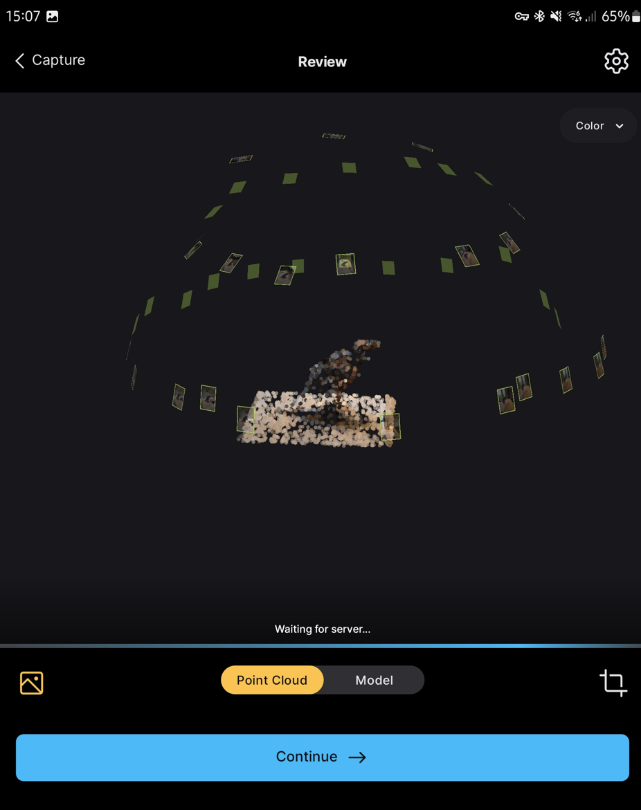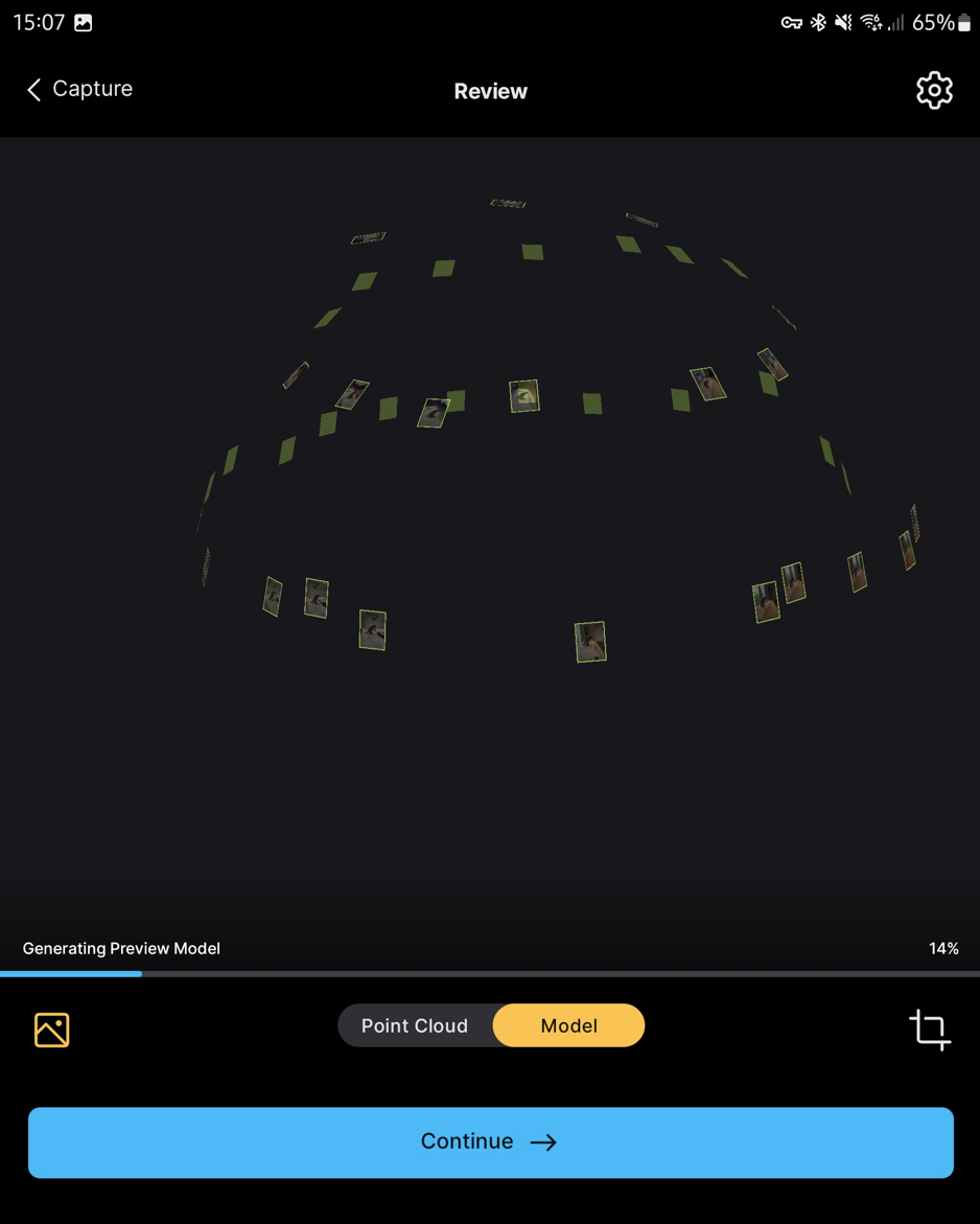 When you’ve got a bunch of photos, it will create a sparse 3D point cloud. Note that it does this on device, it’s still uploading the full resolution images at this point. Note that you can set it to only upload on WiFi, which is important: