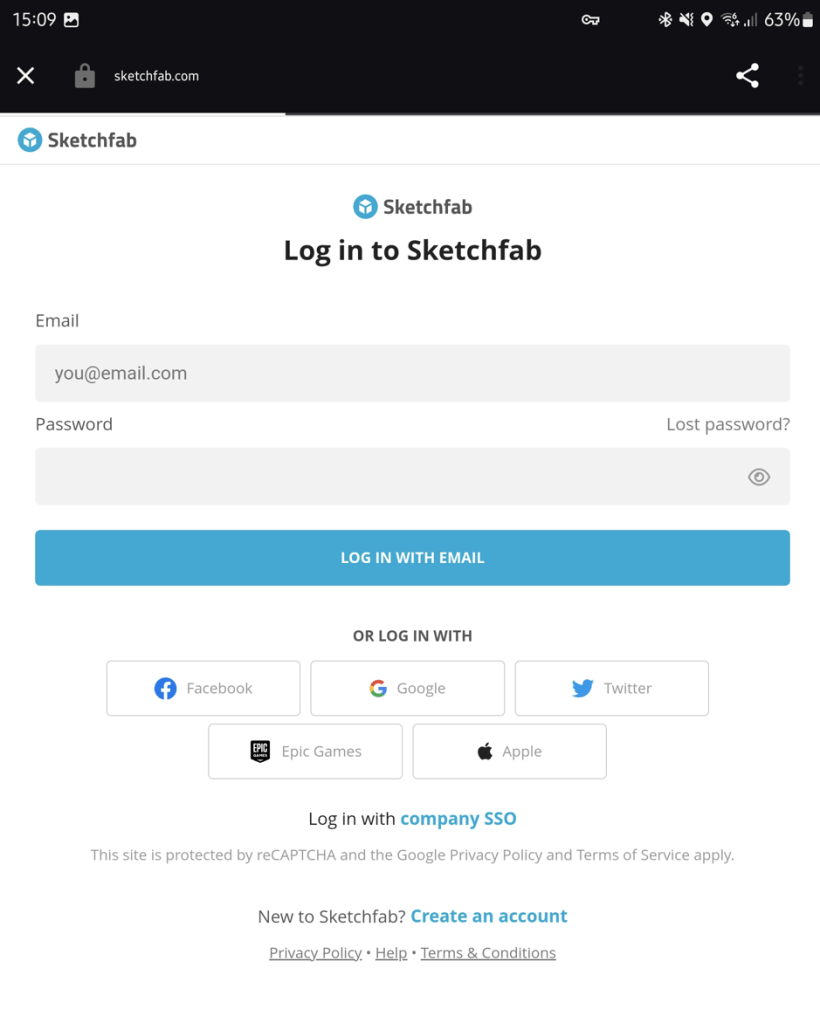 When you click continue after this stage, you need to sign in with your sketchfab account: