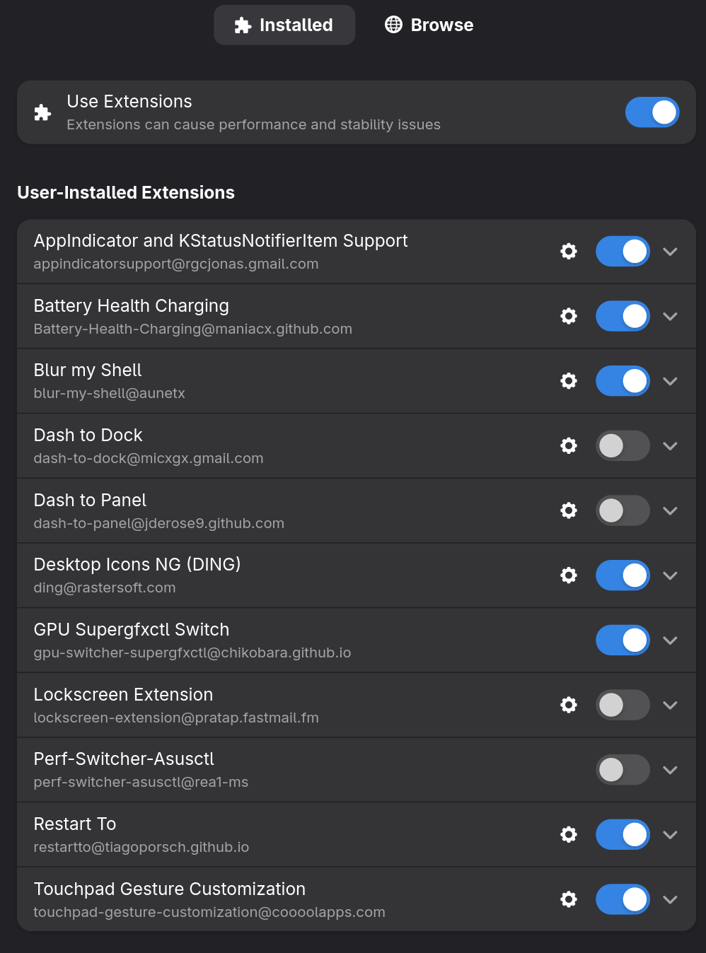 After that, it was time to customize everything – a whole bunch of Gnome extensions: