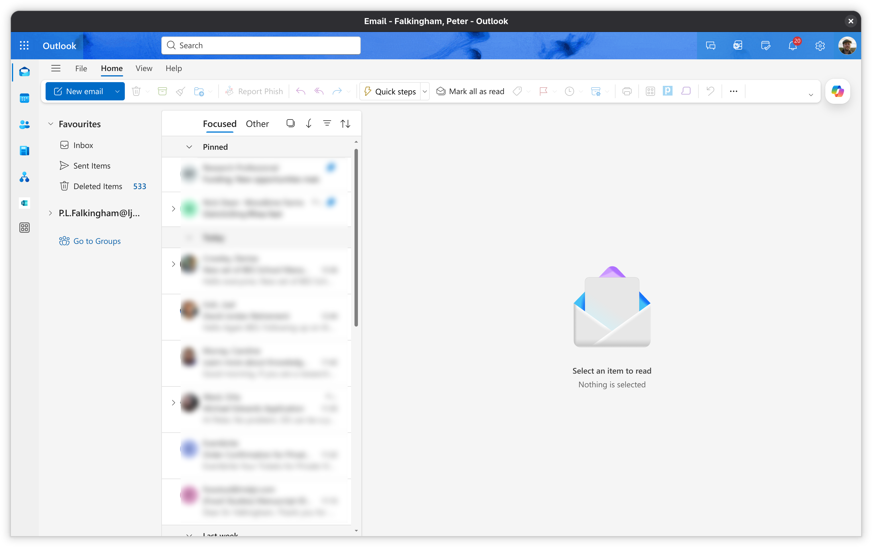I’m using a two-pronged approach for email. I really do need to get emails via Outlook so that I get full support for accepting/declining meeting invites, reactions (which i detest, but other people use) and stuff like that.