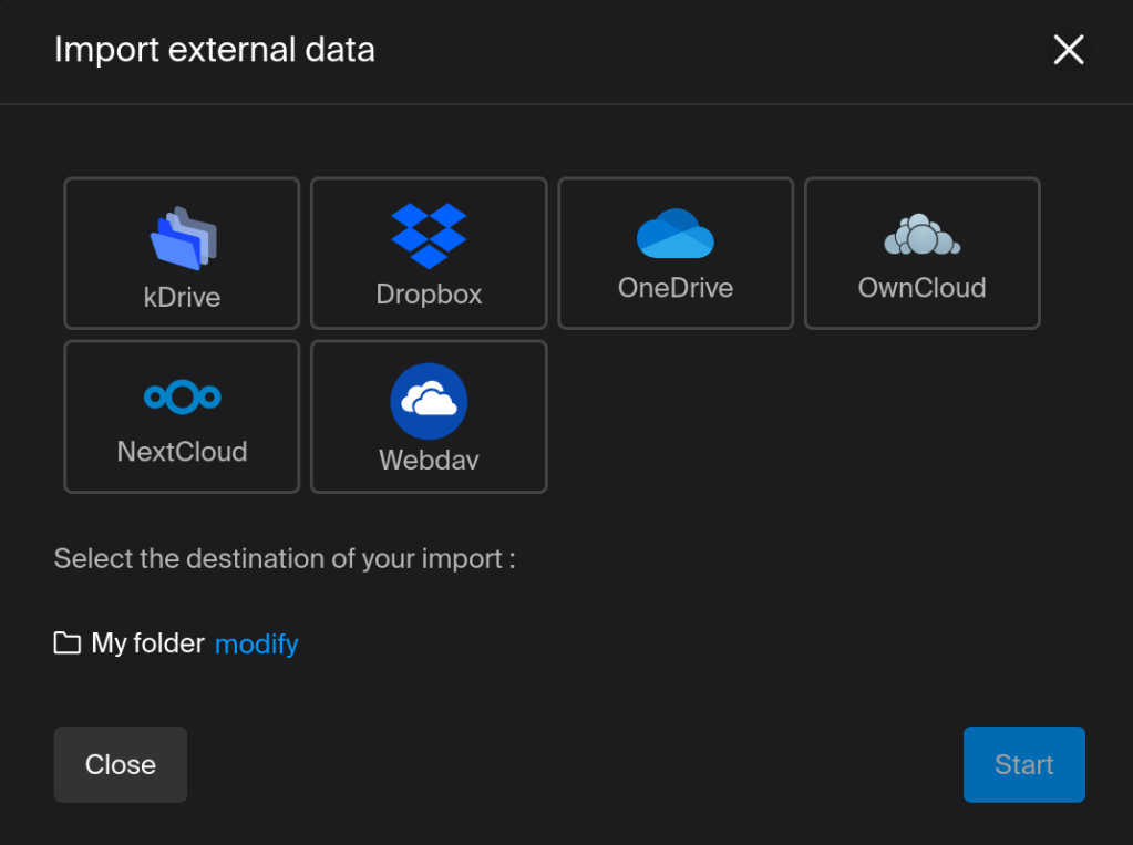 kDrive also offers an option to import from other cloud services. In settings, there’s an “import external data” button: