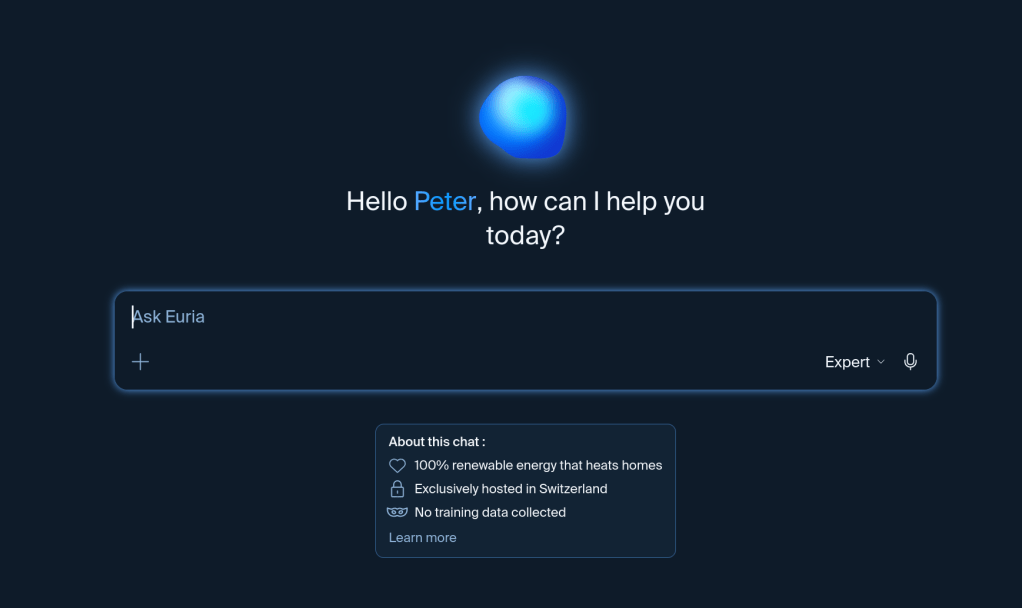 As part of my myKsuite+ subscription, I get access to mail, calendar, chat, and their own AI ‘Euria.’ I’ve used none of these. Euria seems to take the data sovereignty and ethical stuff seriously – powered by renewable energy, hosted in Switzerland, and no collection of data for training: