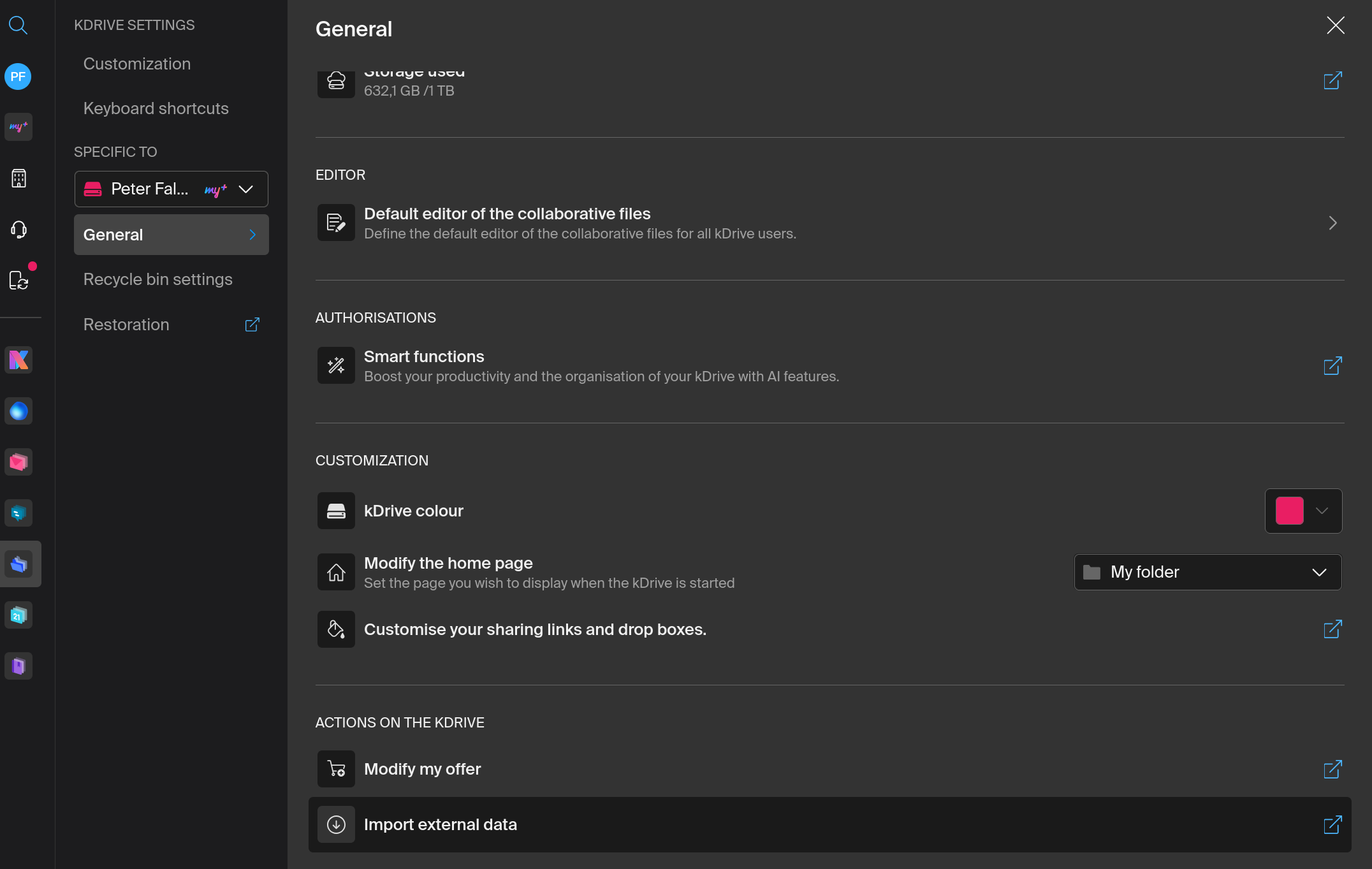 kDrive also offers an option to import from other cloud services. In settings, there’s an “import external data” button: