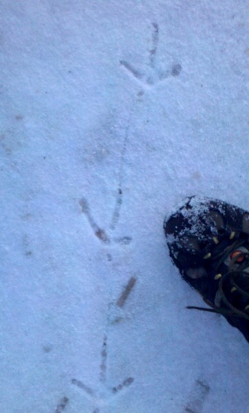 Description: Tracks from an unidentified bird in ~ 5mm snow.