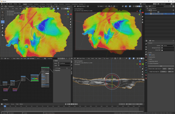 A custom shader in blender for quickly applying height maps to fossil tracks.